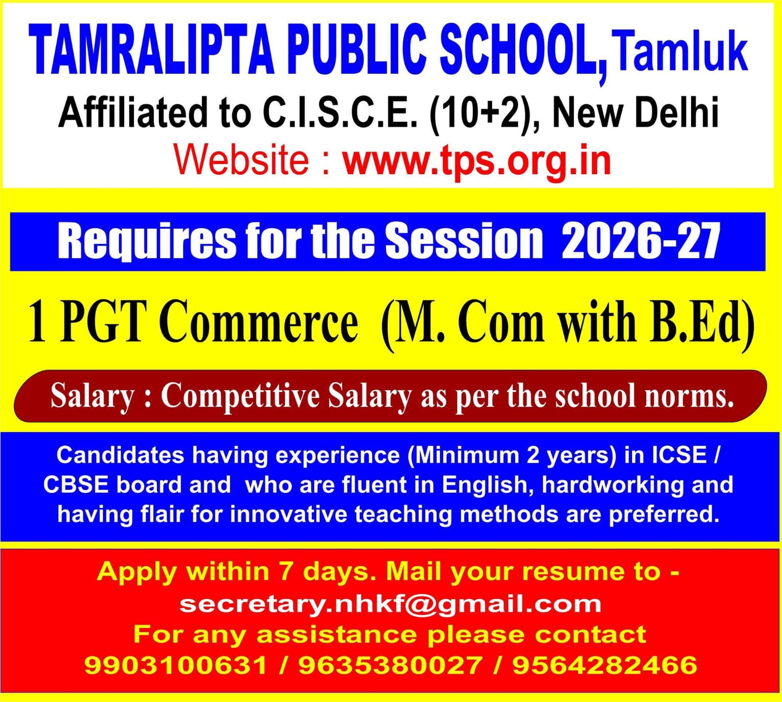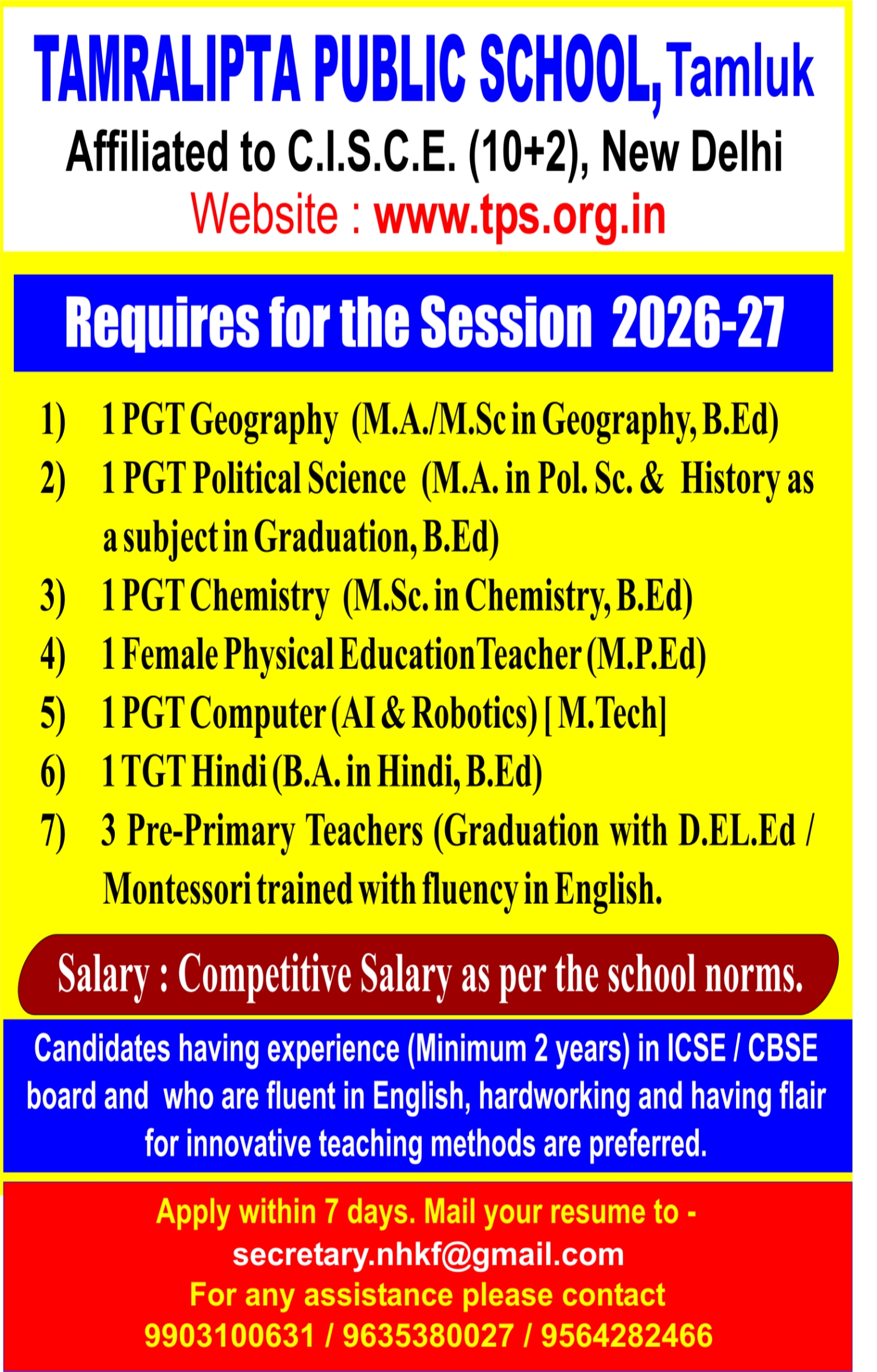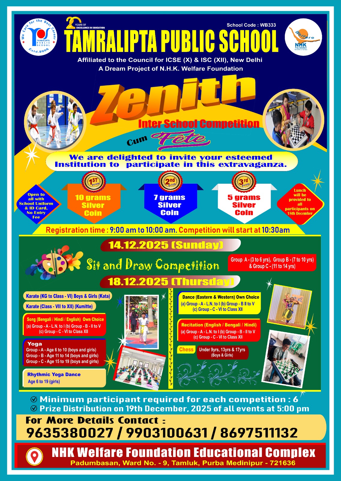 Tamralipta Public School provides education for boys and girls from Lower Nursery (age 3+) to Class XII (ISC). It is affiliated to the Council for the Indian School Certificate Examination, New Delhi, At the end of class X Students will appear for ICSE board examination and ISC examination at the end of class – XII. The School is recognized by the Government of West Bengal through the Deputy Director of School education, Anglo- Indian Schools.